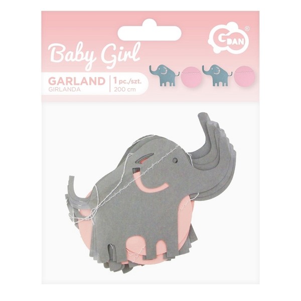 Papírová závěsná girlanda se slony a světle růžovými kruhy je sladkou ozdobou na výzdobu pro holčičky, ať už je to narození, její narozeniny nebo tématická párty Baby shower.