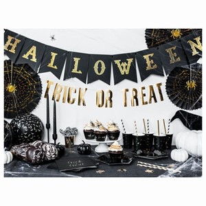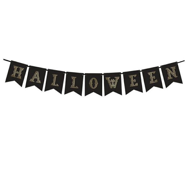 Banner Halloween v černé barvě je krásná výzdoba na vaši strašidelnou Halloweenskou párty.