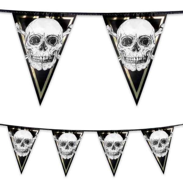 | Pirátský banner se skládá z 10 vlajek, zdobených bílou lebkou a zkríženými hnáty. Zadní strana vlaječek je … |