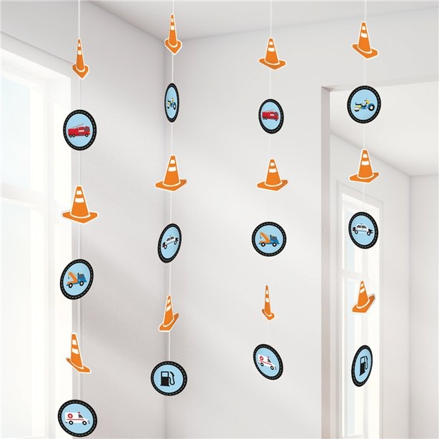 Dekorační girlanda Road je nezbytným doplňkem výzdoby pro narozeninovou nebo tématickou dopravní párty pro malé milovníky aut.