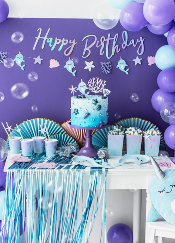 Tematická girlanda na party s oblíbeným mořským jednorožecem Narwalem.
