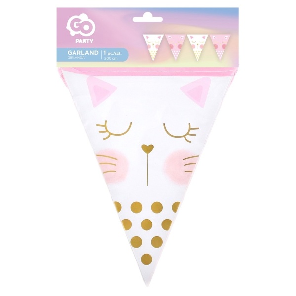 Girlanda je vyrobena z pevného barevného papíru a roztomilá koťátka budou zdobit vaší malé holčičce narozeninovou párty.