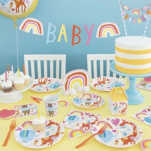 Doplňte tématickou baby zoo party s dalšími dekoracemi jako jsou ubrousky, kelímky, talířky ve stejném barevném provedení.