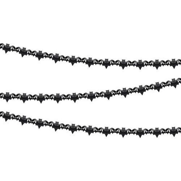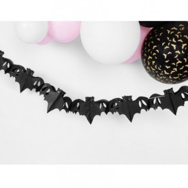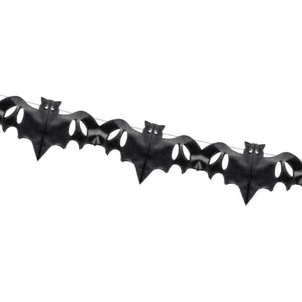 Girlanda s černými netopýry je vyrobena z hedvábného jemného papíru. Je vhodná pro zavěšení na zeď nebo do prostoru. Nespočet netopýrů seřadilo na černém hedvábném papíru po délce 4 m.