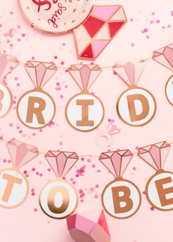 Banner Kroužky s nápisem ''Bride to be'' z papíru, mix barev. Výška cca 16,5 cm, délka provázku cca 2,5 m.