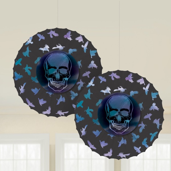 Závěsná dekorace s Lebkou a létajícími havrany nesmí určitě chybět jako dekorace na žádné halloweenské párty.