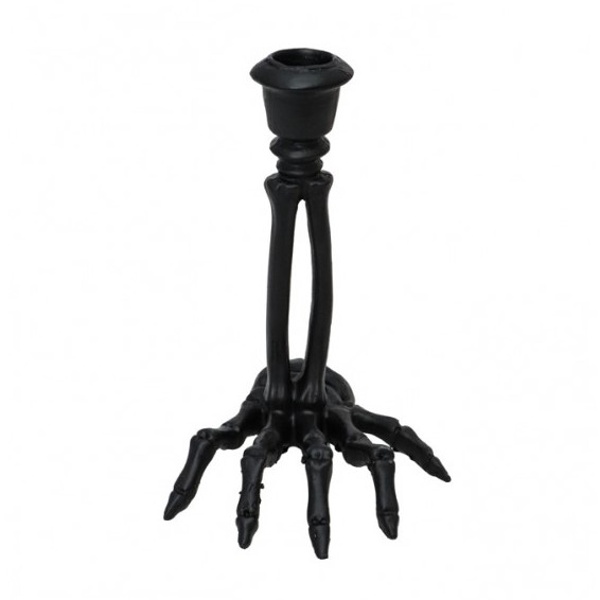 Kosterní svícen v černé pryskyřici je velmi dekorativní a originální výzdoba na tématické Gotik nebo halloweenské párty.