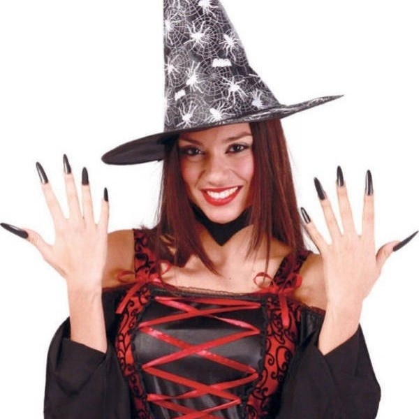 S těmito černými velmi dlouhými nalepovacími nehty si skvěle vylepšíte váš čarodějnický outfit.