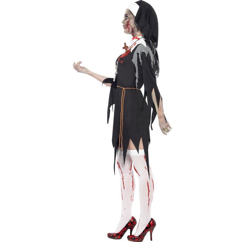 Kostým krvavé  zombie jeptišky se skládá z krátkých černých cípatých šatů s tříčtvrtečními rukávy, též ukončenými cípy. Šaty mají bílý límeček a v pase tenkou šňůrku.