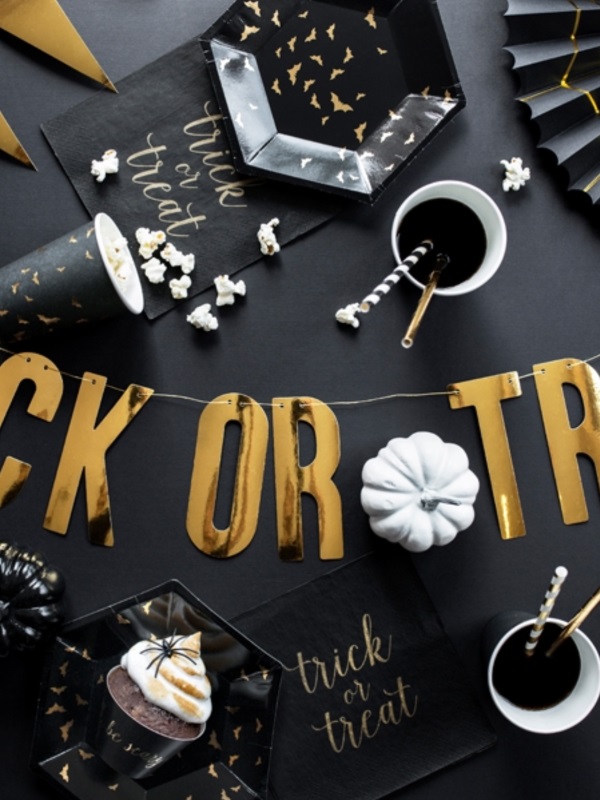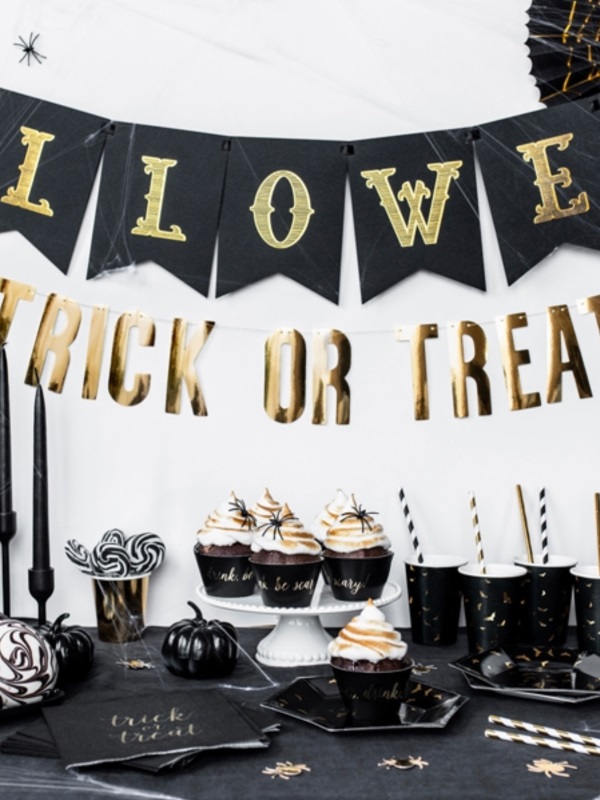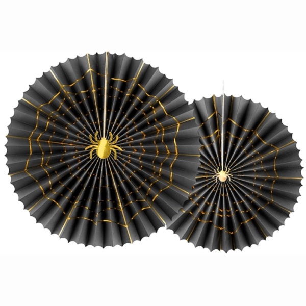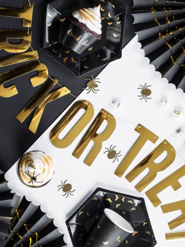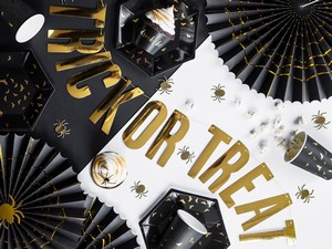 Halloweenská dekorace z nové trendové kolekce Trick or treat,  Výzdoba vhodná nejen pro halloweenskou oslavu, ale pro stylovou party v gotickém stylu. Máte rádi tajemno a trochu toho dráždivého strachu? Rozety se zlatou pavučinou  vytváří atmosféru, které rozhodně nepůsobí lacině, ale tajuplně a magicky.
