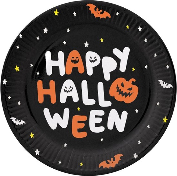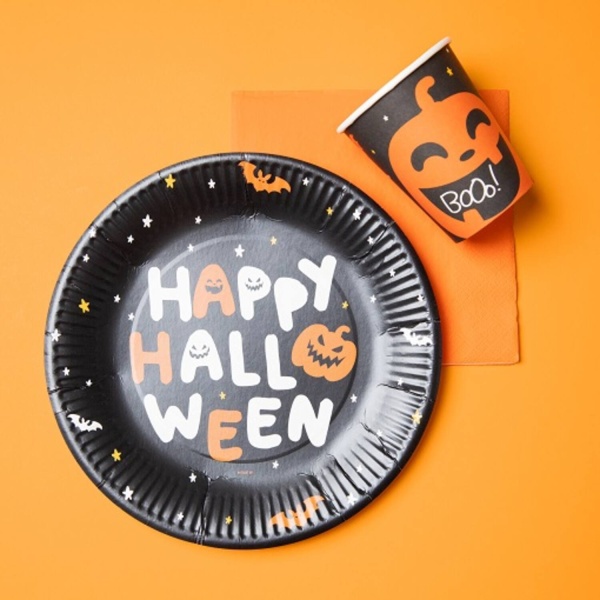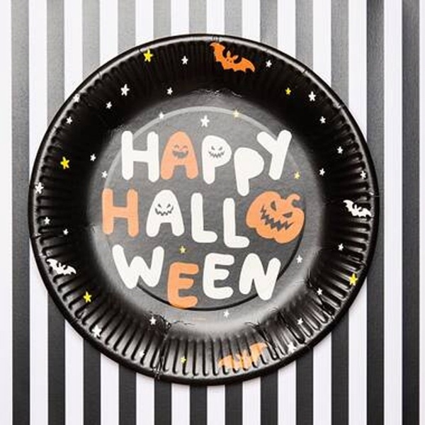 Talíře jsou jednorázové, praktické a připravené pro chutné občerstvení a dobroty, aby s dětmi strávily pěkný Halloween.