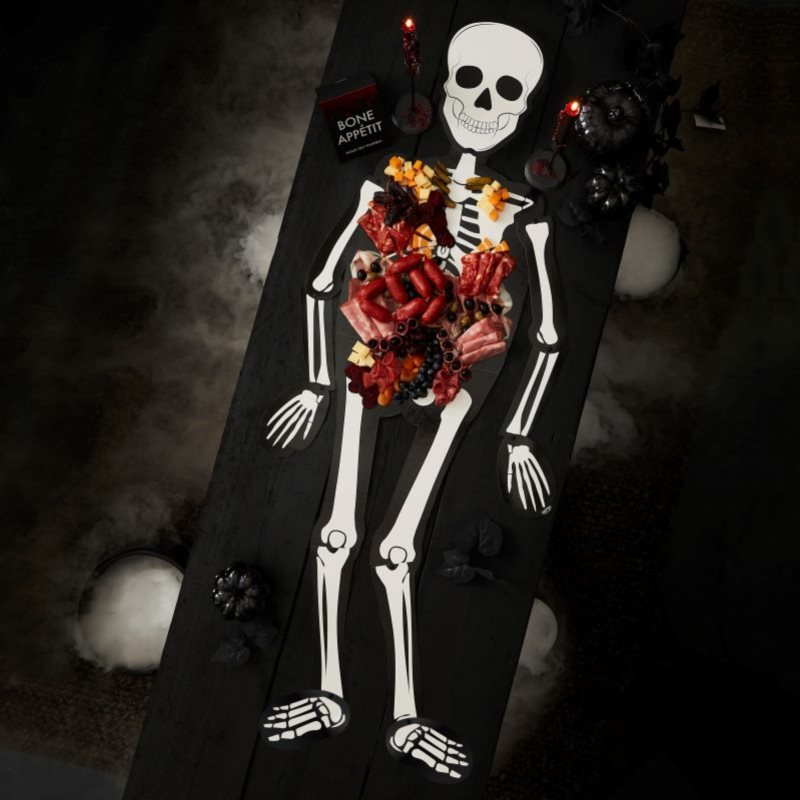 Vytvořte si s touto servírovací deskou strašidelný stůl a ohromte své hosty pamlsky a různými lůhůdkami, které na ni položíte. Dekoraci lze také použít jako halloweenskou ozdobu v podobě kostlivce. Můžete s ním volně pohybovat.