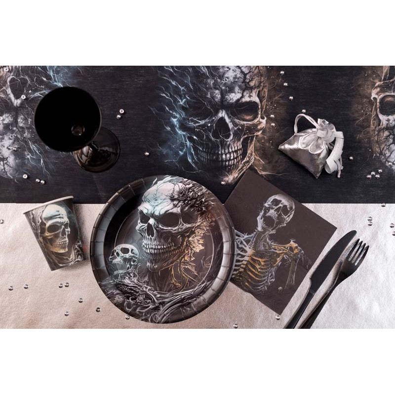 Pro strašidelnou výzdobu vašeho halloweenského stolu rozhodně zvolte tyto jednorázové talíře s děsivou lebkou.