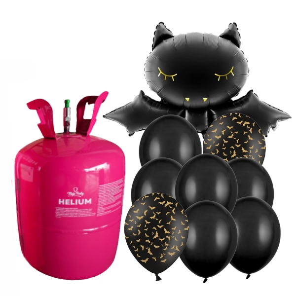 Heliový set s balonky na Halloween za skvělou cenu. Helium je určeno pro náfuk 30 latexových balonků o velikosti 23 cm. Snadno s ním, ale nafouknete heliový buket, kerá je součástí setu.