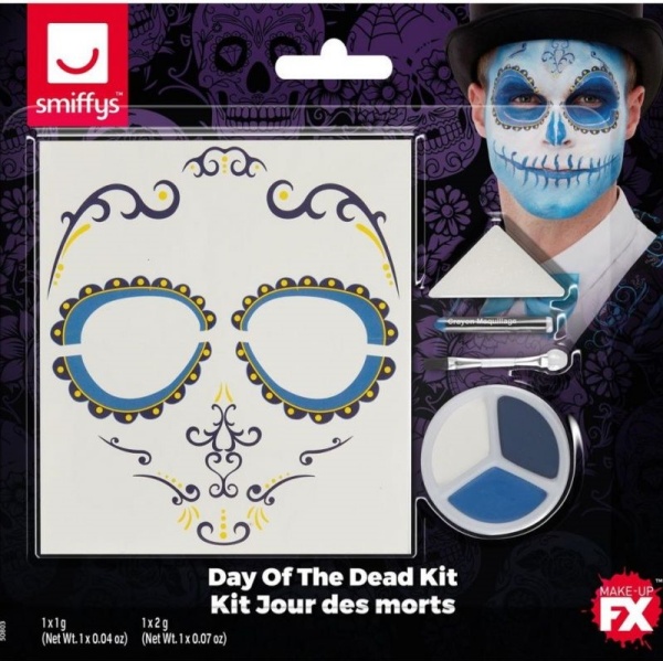 Tato sada líčení na obličej je určena pro dospělé. Skládá se z tetovacího listu, tužky, palety, houby a štětce. Paleta má tři barvy: tmavě modrou, modrou a bílou. Tužka je také modrá.