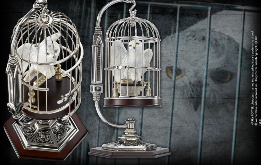 - Dokonalý doplněk do sbírky fanoušků Harryho Pottera. Replika klece s Hedvikou je vyrobena z mosazi a slitiny zinku. Podstavec je vyrobený ze dřeva. Výška i s podstavcem cca 25 cm.