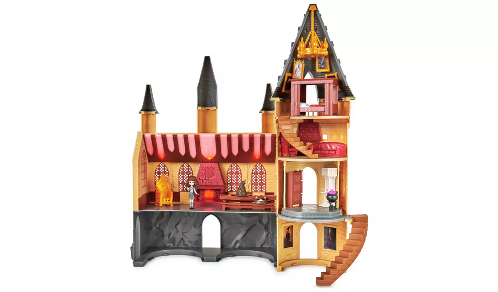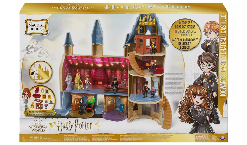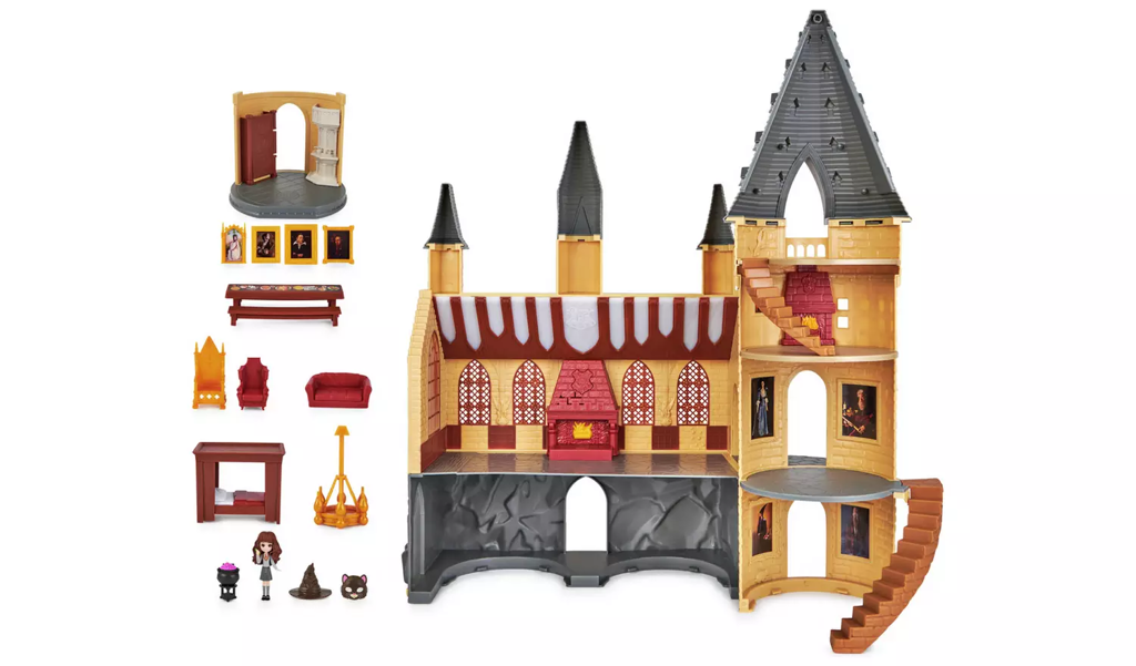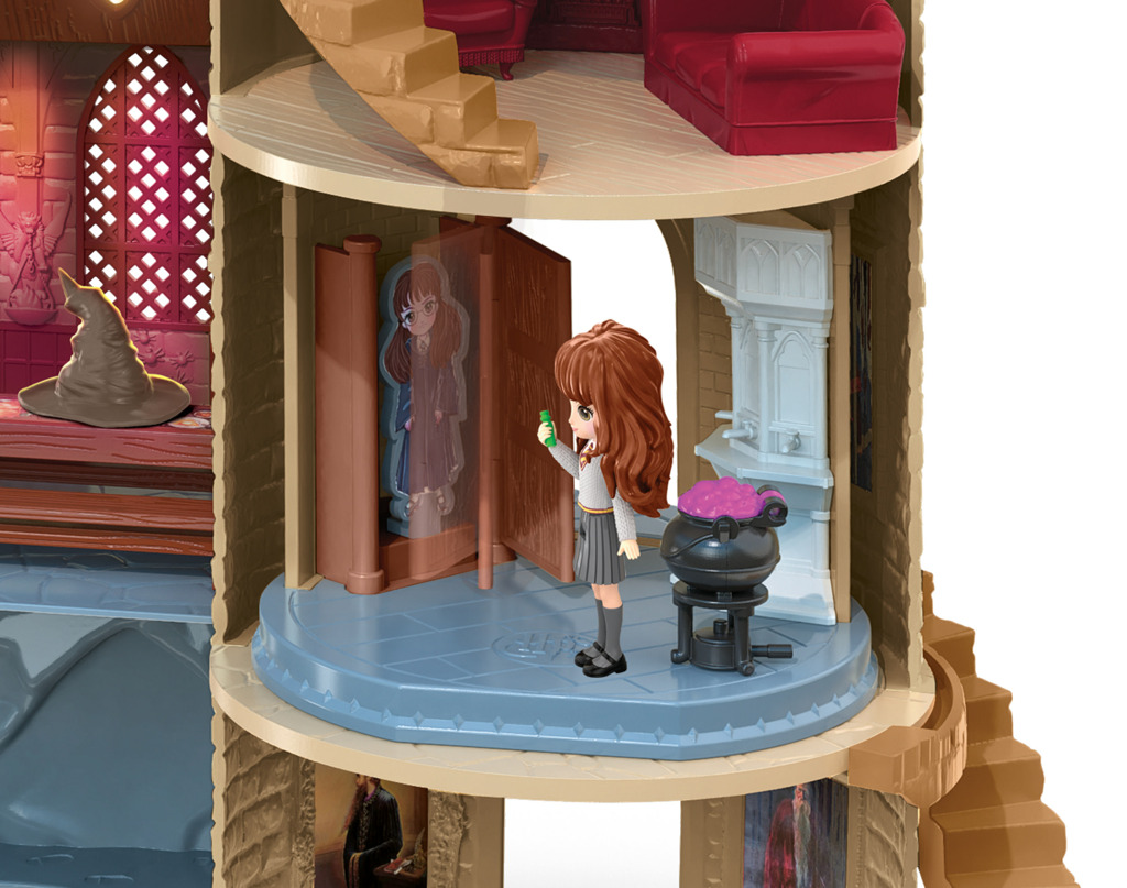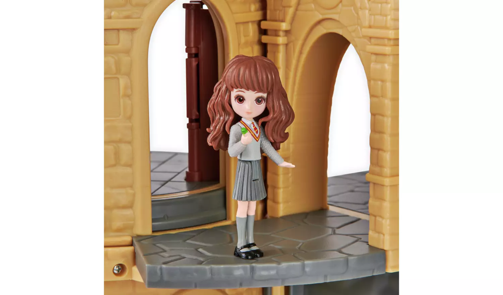 Bradavický hrad má výšku 60cm, obsahuje exkluzivní figurku Hermiony a 11 příslušenství v podobě nábytkových doplňků pro vybavení jednotlivých místností hradu. K dispozici jsou další 3 doplňkové učebny prodávané samostatně. Obsahuje 1 Bradavický hrad, 11 doplňků, 1 exkluzivní panenku Hermiony, Instrukce. Vhodné od 5 let.