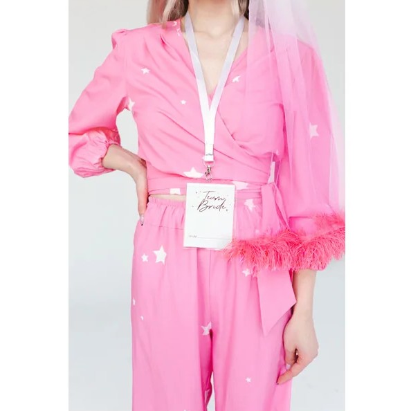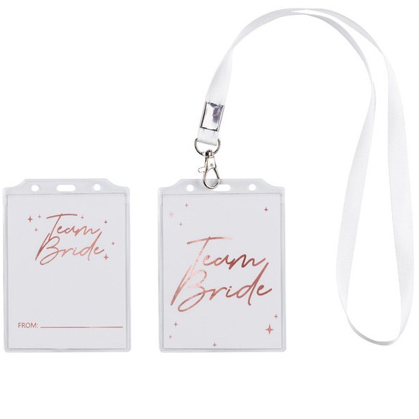 Pokud pořádáte dámskou rozlučku se svobodou, nezapomeňte na tyto efektní doplňky pro vaše pozvané kamarádky. Originální visačky mají nápis"Team Bride" s bílými šňůrkami na krk.