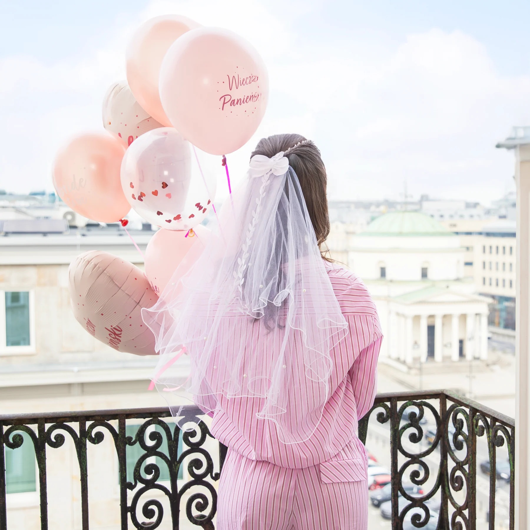 Závoj v bílé barvě je ideálním doplňkem pro budoucí nevěstu, která chce zazářit během své rozlučce se svobodou.