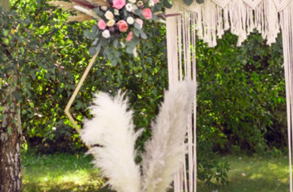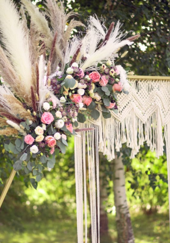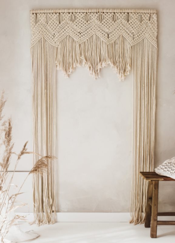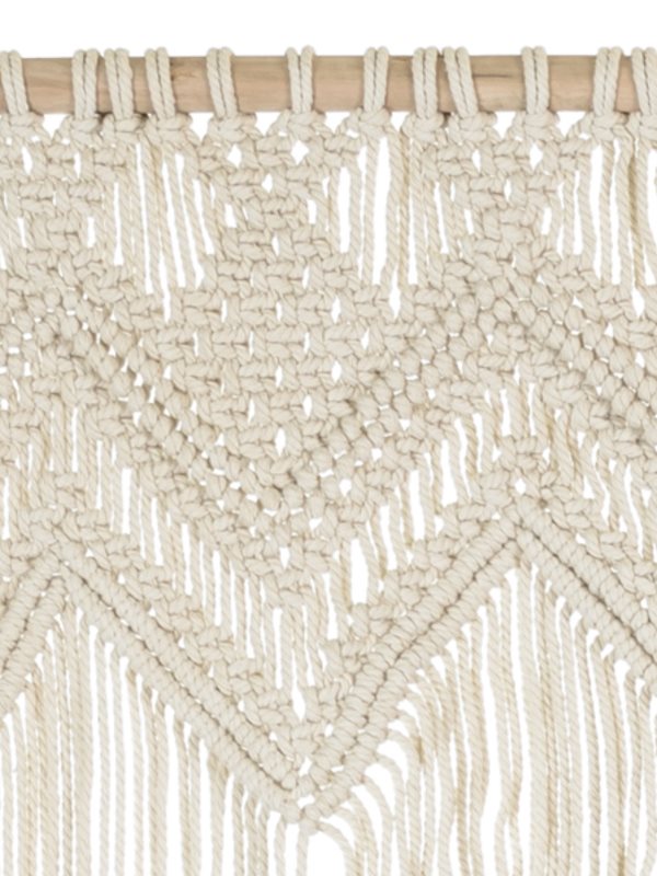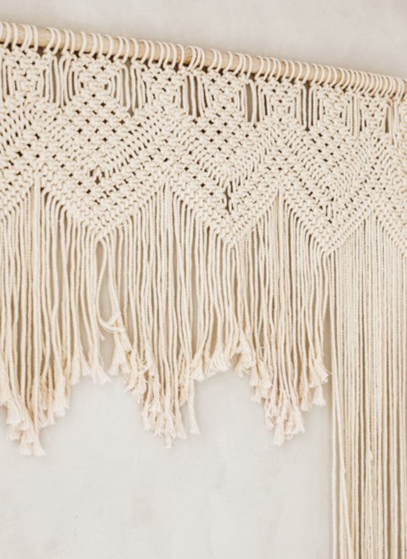 Makramé v smetanové barvě, velikost přibližně 104 x 182 cm.