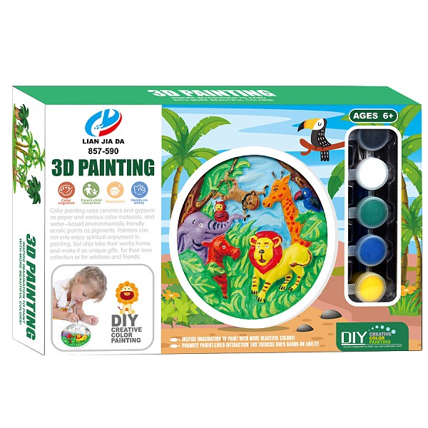 Výrobek pomáhá rozvíjet kreativitu a jemnou motoriku dítěte. Sada malování pro malé umělce v designu divokých zvířat, namaluj si svůj 3D obrázek ze sádry. Smíchej barvy a tvoř další barvy.