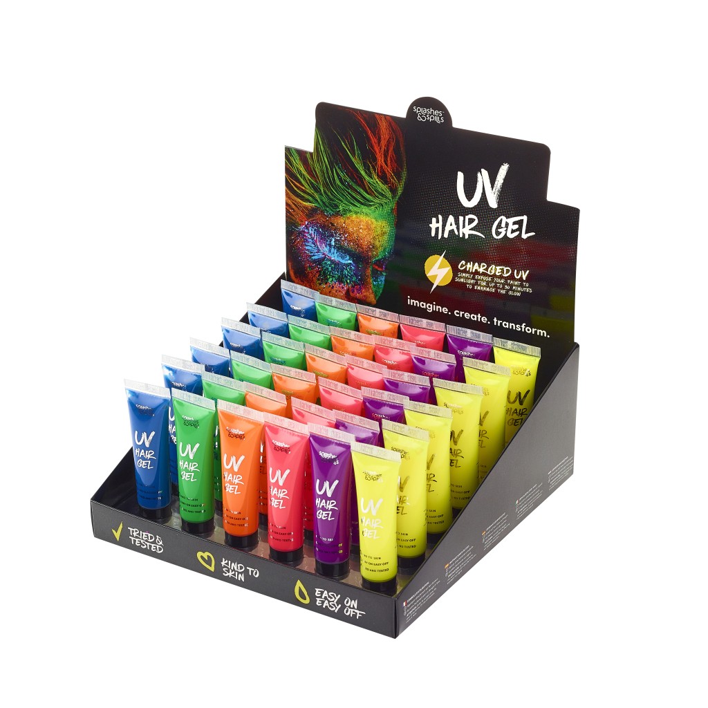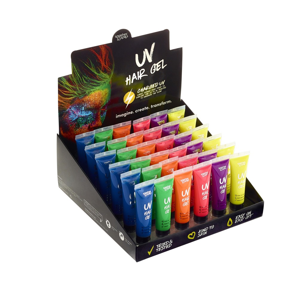 - Gelová barva na vlasy neon UV v tubě – barvou si můžete nanést na vlasy a když jste ve tmě, budou svítit krásnou neonovou barvou. Naše barvy jsou vyrobeny z vysoce kvalitních surovin, které jsou bezpečné a šetrné k pokožce. V několika barevných provedeních – modrá, zelená, oranžová, růžová, fialová a žlutá. Dermatologicky testováno. Velikost 10ml. Lehce odstranitelné vodou.