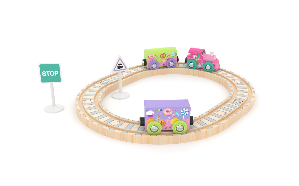 J`adore je řada vzdělávacích hraček pro nejmenší, vyrobených z ekologicky udržitelného dřeva, bez chemikálií. Produkt stimuluje dětskou fantazii. Set je vhodný pro děti od 18 měsíců. Set obsahuje koleje a vláček v barvách a designu pro malé princezny.