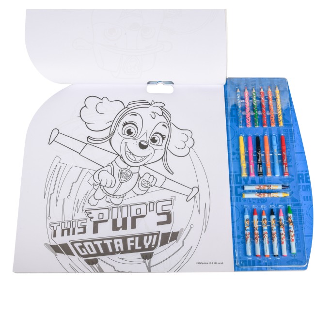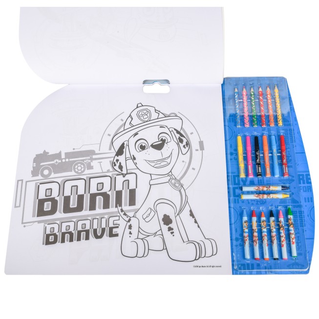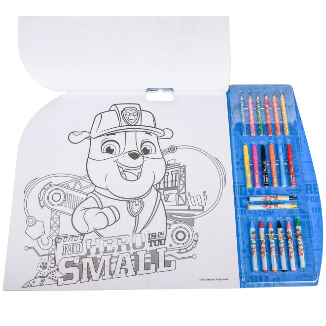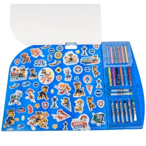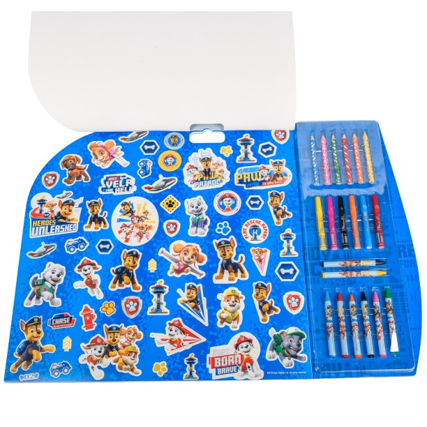 Sada obsahuje 8 ks voskovek, 6 ks fixů, 6 ks pastelek, aršík s 84 samolepkami Tlapková patrola, 15 šablon a čisté