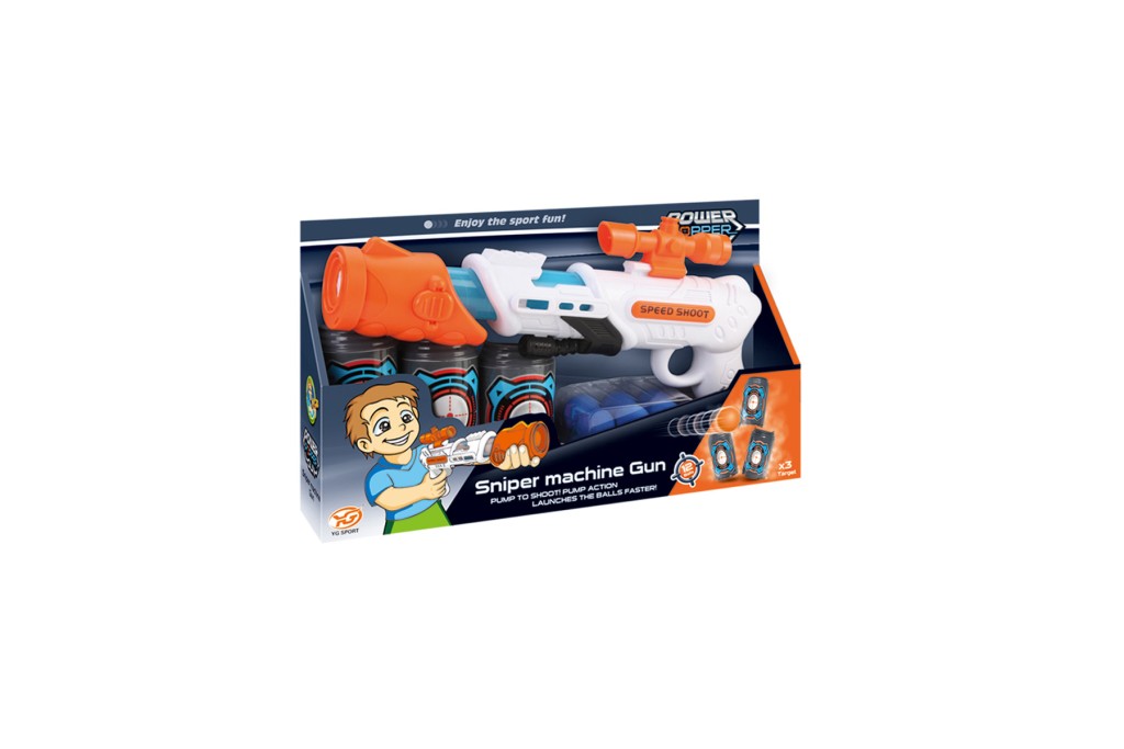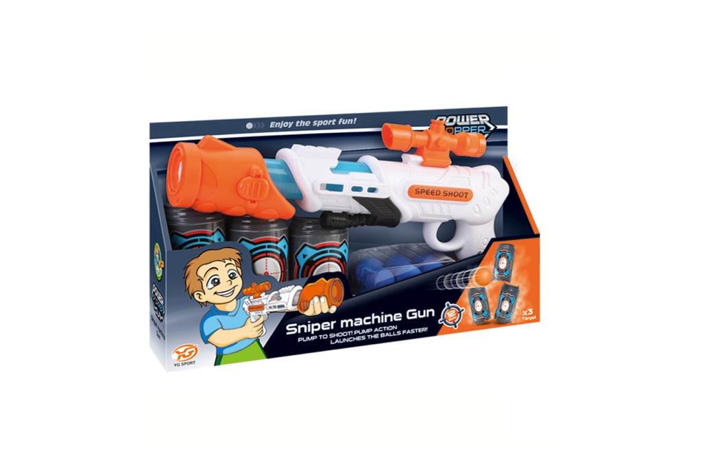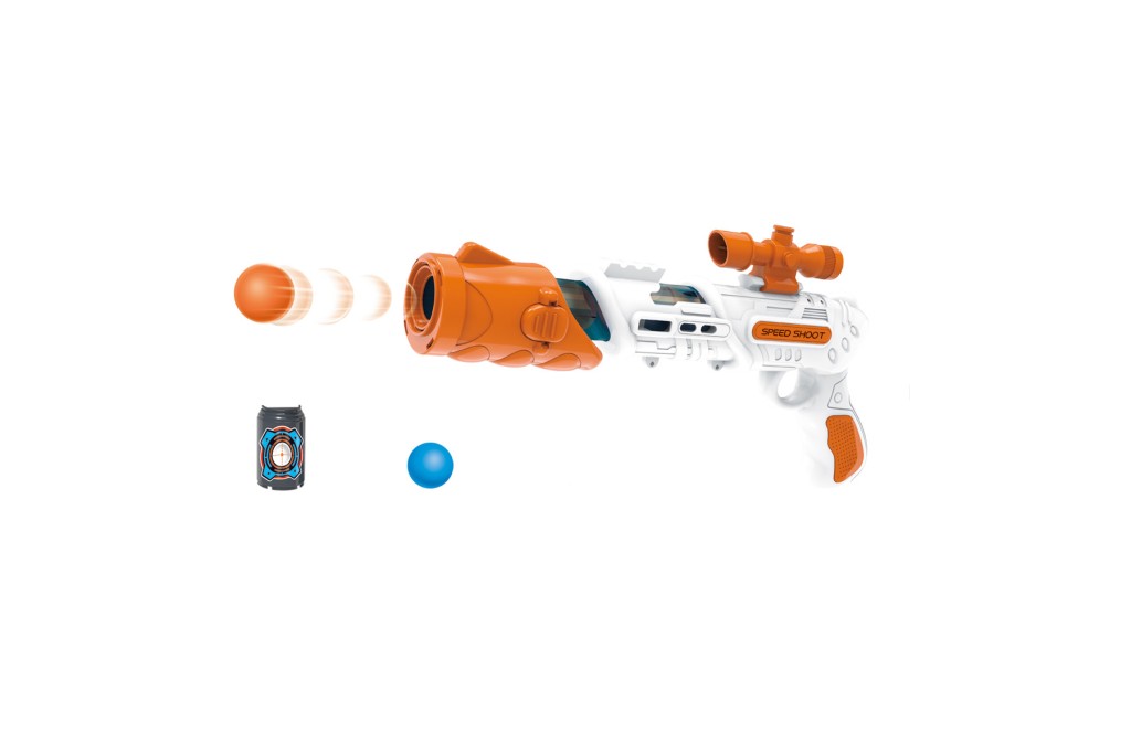 - Užij si spoustu zábavy. Pistoli natáhni a střílej. Odpaluje koule rychleji! V balení: 3× cíl, 12 pěnových míčků. 1, nalož míček do pistole 2, zatáhni zpět a zatlač 3, střílej pěnový míč.