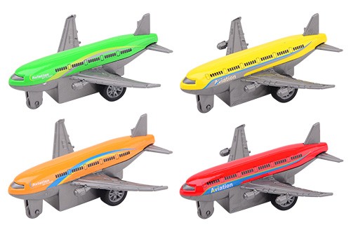 Sada kovových letadel natahovacích 4 ks – čtyři kovová, barevná letadla na natahování (funkce pull back).