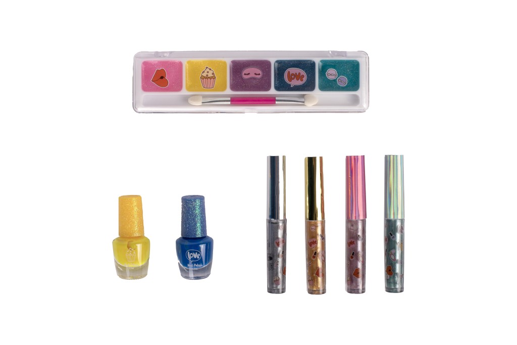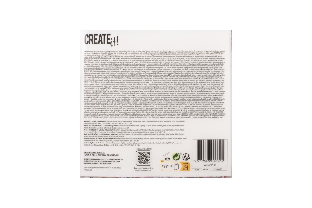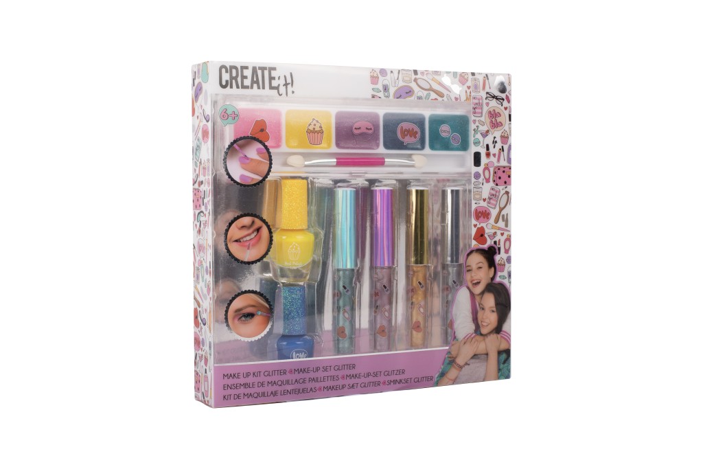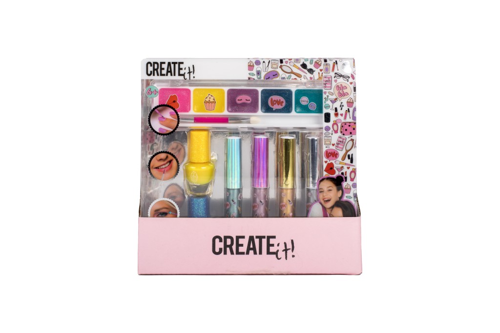 Sada líčení Creat it Metalic – obsahuje 2 laky na nehty, 4 metalické lesky na rty, malý oboustranný štěteček, sada 5 třpytívých stínů na oči.