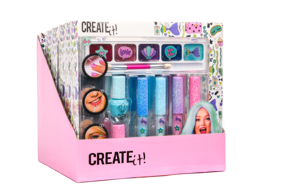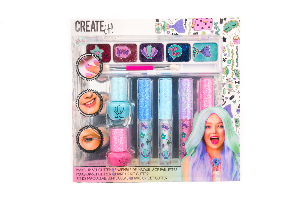 - Sada líčení třpytivý Mořáská panna Creat it! V duhových barvách mořské panny. Obsahuje 5 ks třpytkových stínů, aplikátor, 4 lesky na rty a 2 laky na nehty. Dermatologicky testováno, odpovídá normám EU.