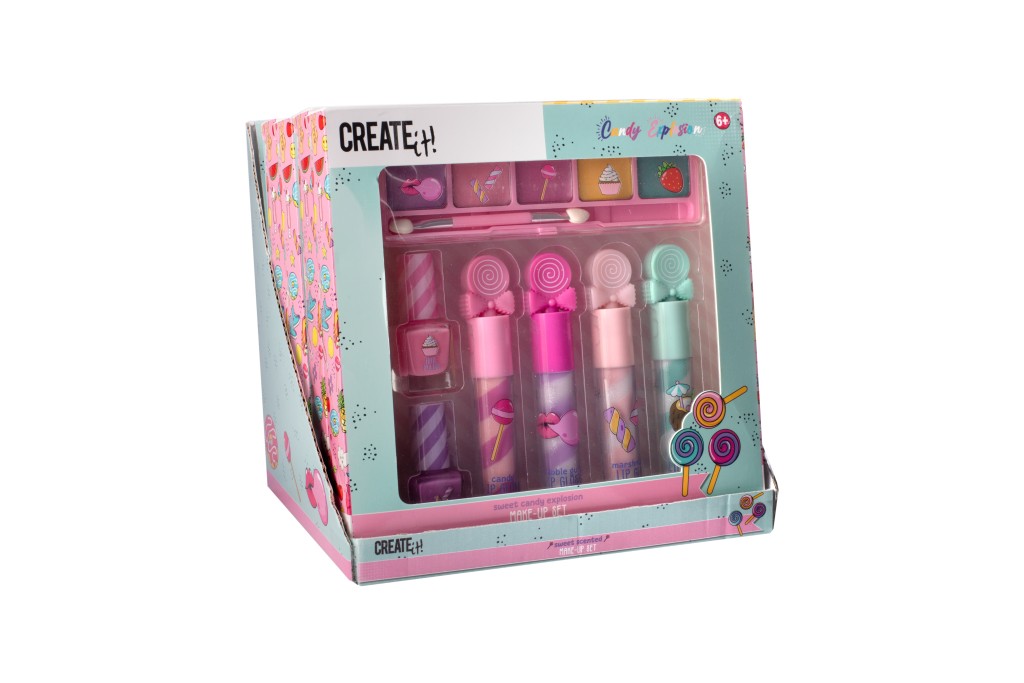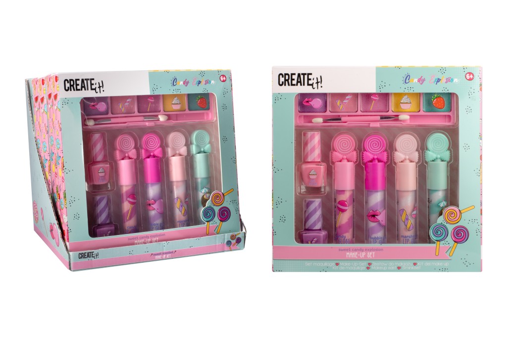 - Sada Make up Candy – sada obsahuje 4× třpytivý lesk na rty s různými příchutěmi, 5× oční stíny s aplikátorem a 2× lak na nehty.