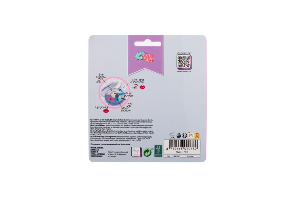 - Sada Make up Dunut Candy – dvě různé barevné palety očních stínů, lesk na rty a make up.