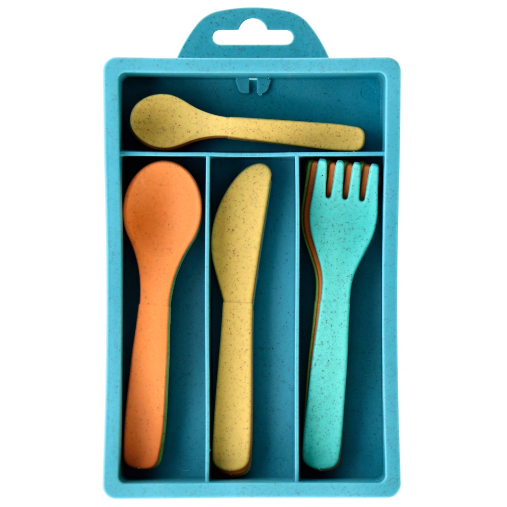 - Sada příborů z bioplastu – zabaleno v praktické krabičce. Sada obsahuje 4 sady příborů.