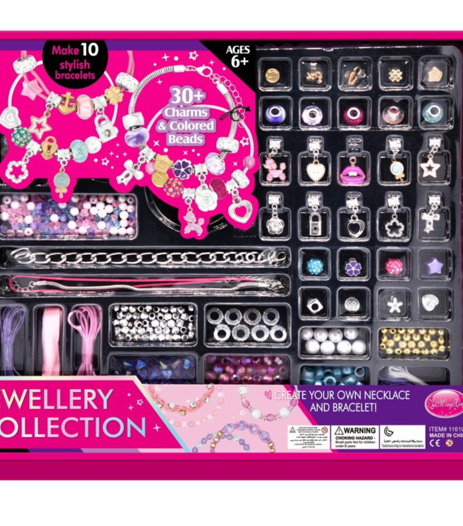 | Luxusní sada na výrobu náramků se spoustou přívěsků a doplňků. Vytvoř si náramek dle své vlastí fantazie. Rozměry: 34 cm × 5 … |
