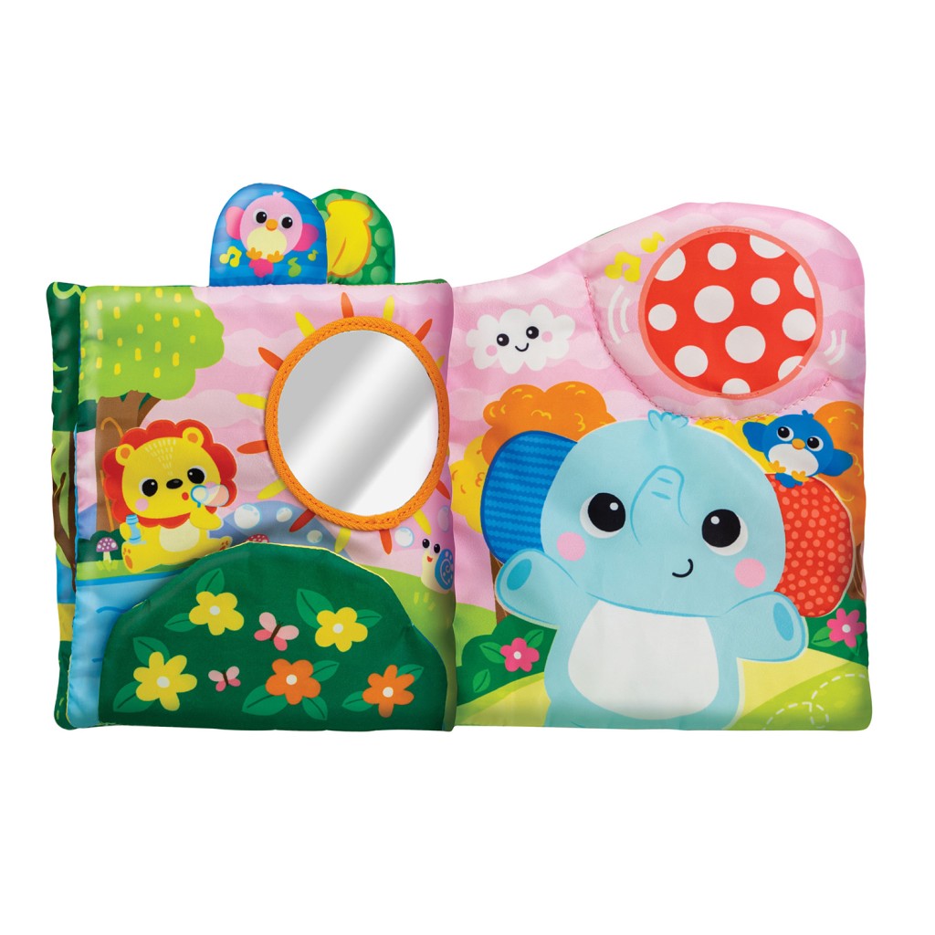 - Hudební, zábavná, měkká knížka pro rozvíjení smyslů, s texturovaným kousátkem. Stiskni tlačítko a zazní hudba a zvuky. Obsahuje dětské zrcátko a pískátko. Skvělá zábava na cesty, hračka má tlačítko ON-OFF a Hi-Lo pro nastavení vyšší nebo nižší hlasitosti, vyžaduje baterie 2× AAA, jsou součástí.