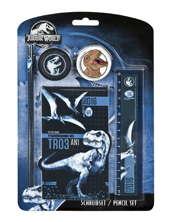 - Školní sada Jurksý svět – 5 ks obsahuje tužku, ořezávátko, gumu, pravítko a notýsek.