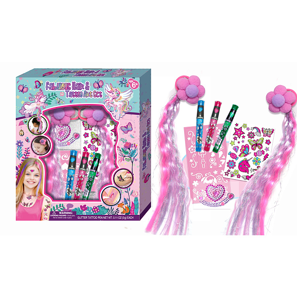 Úžasné tetovací studio, se kterým si vyzdobíš vlasy a tělo barevnými vzory i kamínky. Sada obsahuje tetování, ozdobu do vlasů, kamínky, šablony, barevná tetovací pera. Zažij spoustu zábavy a ozdob sebe i kamarády. Vhodné pro děti od 6ti let.