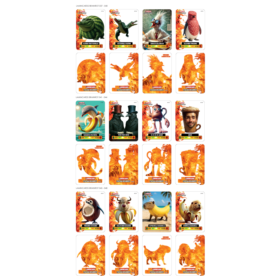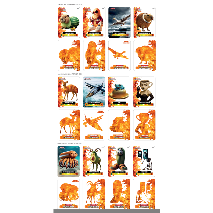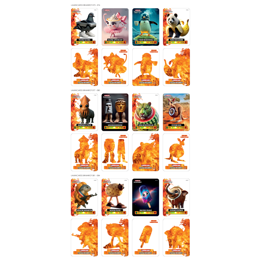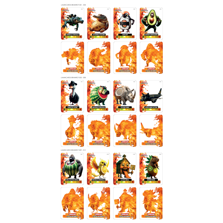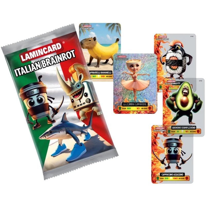 Lamincard Italian Brainrot je sběratelský set laminovaných karetních lamincards, inspirovaných italskou pop-kulturou a humorem.