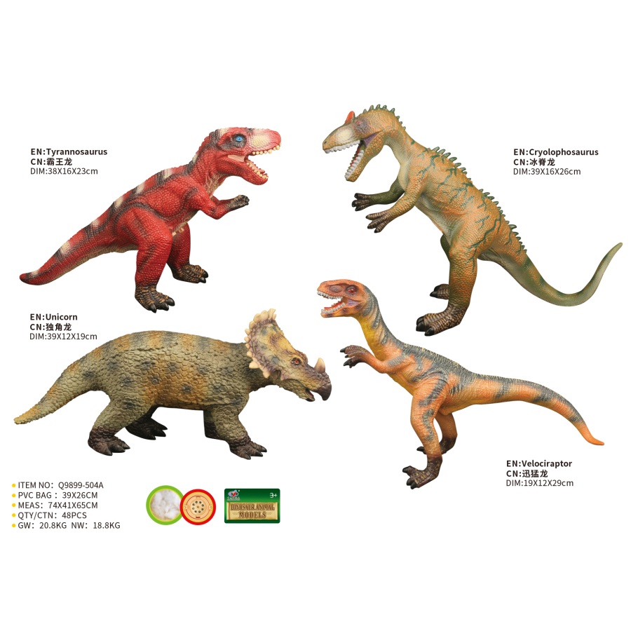 V balení naleznete 4 druhy Tyrannosaurus, Cryolophosaurus, Velociraptor, Unicorn.