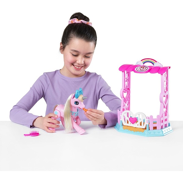 Ponořte se do kouzelného světa s tímto interaktivním robotickým jednorožcem, který ožívá a reaguje na vaše podněty. Součástí balení je také stáj, kde váš jednorožec může “bydlet” a odpočívat. T