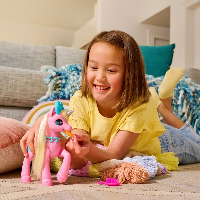 Tento model nabízí zvuky, pohyby a různé způsoby interakce, což z něj činí vynikající hračku pro děti, které milují fantasy zvířata a interaktivní hračky. Jednorožec může reagovat na doteky, vydávat zvuky, mít světelný efekt na roh, případně má funkce, kdy ho můžete krmit, česat hřívu či používat jiné doplňky. Interaktivní jednorožec reaguje na doteky, vydává zvuky.