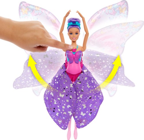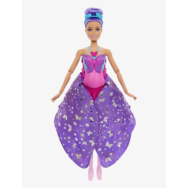 Inspirujte představivost vaší malé slečny k létání s touto úžasnou panenkou Barbie Dance and Flutter a kouzelnou proměnou 2 v 1!