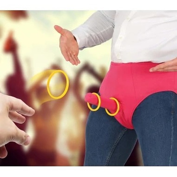 Kdo přihodí nejvíce kroužků na penis? Ten samozřejmě vítězí. Tato zábavná hra se hodí ale i na párty pro dospělé nebo oslavu narozenin pro hosty se smyslem pro humor.