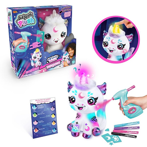 Součástí tohoto balení je plyšové zvířátko, airbrush nástroj, 4 různé barevné náplně, 100 různých šablon a návod. Plyšové zvířátko si můžeš pomocí airbrushe libovolně posprejovat, můžeš využít různé barvy a šablony. Fantazii se meze nekladou. Pokud se ti vytvořený design přestane líbit, stačí plyšáka omýt vodou a můžeš začít znovu.