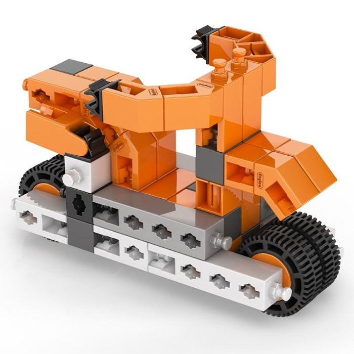 Dle přiloženého návodu a mobilní aplikace krok po kroku snadno vytvoříte až 50 různých modelů. Interaktivní aplikace Engino kidCAD® zobrazí modely ve 3D, které si můžete libovolně otáčet, prohlížet a upravovat. Součástí je i motor s převodovkou umožňující nastavení směru pohybu.
