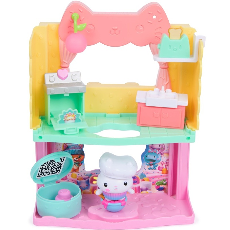 Úžasná dobrodružství čekají v Dortěnině dortové kuchyni! Tato 10dílná herní sada oživuje kouzlo filmu Gábinin kouzelný domek a obsahuje figurku Dortě a celkem 8 kusů nábytku a doplňků do domečku pro úžasná dobrodružství s těmito hravými vzdělávacími hračkami. Dortněnina kuchyň je navržena tak, aby se dala připojit k domečku, a promění se v dvoupatrovou místnost, která rozšiřuje svět Gábinina kouzelného domku o ještě víc napětí a zábavy – navíc s překvapivou funkcí! Umístěte Dortě na nasazovací podstavec, zatáhněte místnost dolů a sledujte, jak se teleportuje do své cukrové říše jako ve filmu! Rozbalte doručený balíček z domečku stejně jako Gábina a objevte překvapení – poté naskenujte QR kód a odemkněte bonus v aplikaci Gábinin kouzelný domek. Tato sada je skvělým způsobem, jak podnítit představivost a vybídnout děti k mňau-úžasným objevům s těmito roztomilými kočičími hračkami ze světa Gábiny. Hračky z Gábinina kouzelného domku jsou jako stvořené pro děti, které si chtějí znovu prožít oblíbené chvíle z filmu o Gábině, nebo si vytvářet nová dobrodružství v jejím kouzelném domečku. Najdete tu hračky pro nejmenší – od doplňků do domečku a nábytku až po její mňau-skvělé kočičí kamarády a úžasné mořské víly. Každá hračka (prodávaná samostatně) nabízí hodiny a hodiny úžasné zábavy.