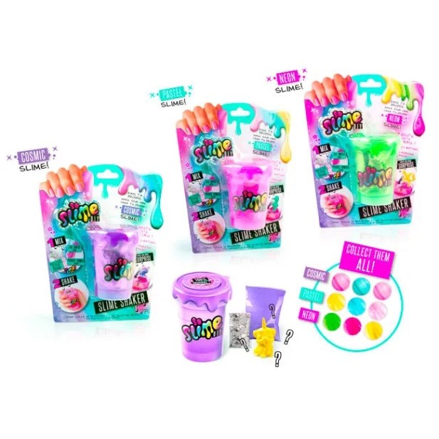 Vyrobte si svůj vlastní sliz. Nasypejte do kelímku prášek, přidejte glitry a figurku. Nalijte vodu až po rysku, zavřete kelímek a směs pořádně protřepejte. Pak kelímek otevřete a počkejte pět minut. Sliz je hotový. Kombinujte barvy, přidejte třpytky a užijte si tu pravou zábavu se slizem.