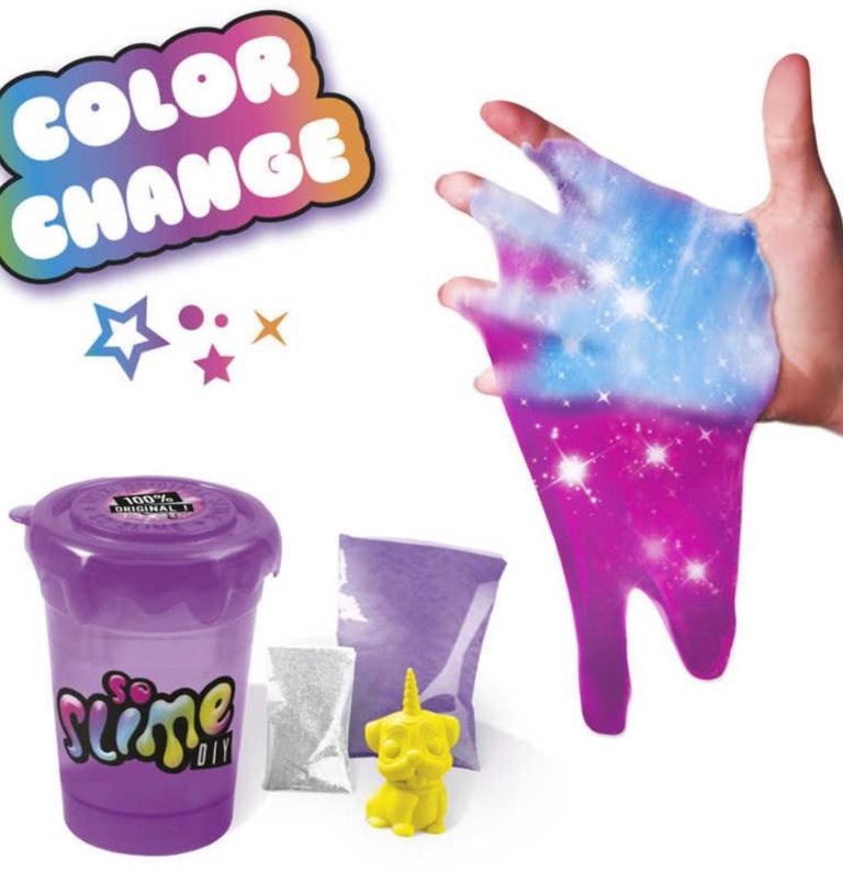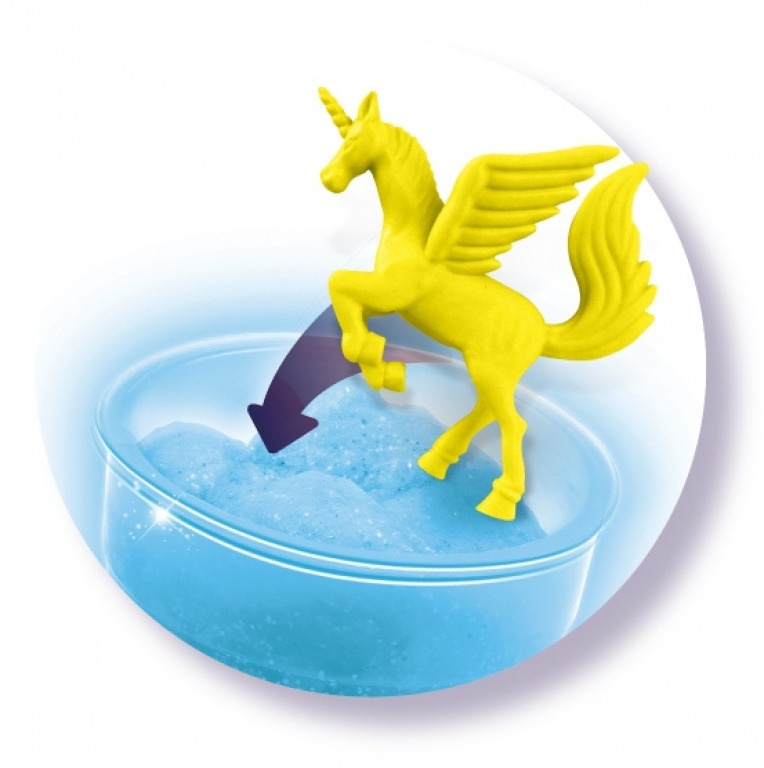 Zábavný sliz je vyrobený na přírodní bázi a mění barvu. Nalijte do kelímku sliz, přidejte glitry a figurku.